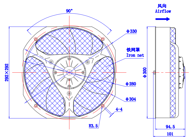 Model:LNF253 Test voltage:27V/13.5V Current≤8.5A/16.5A Speed:2800±200rpm Static pressure:100Pa Air volume≥1800m³/h